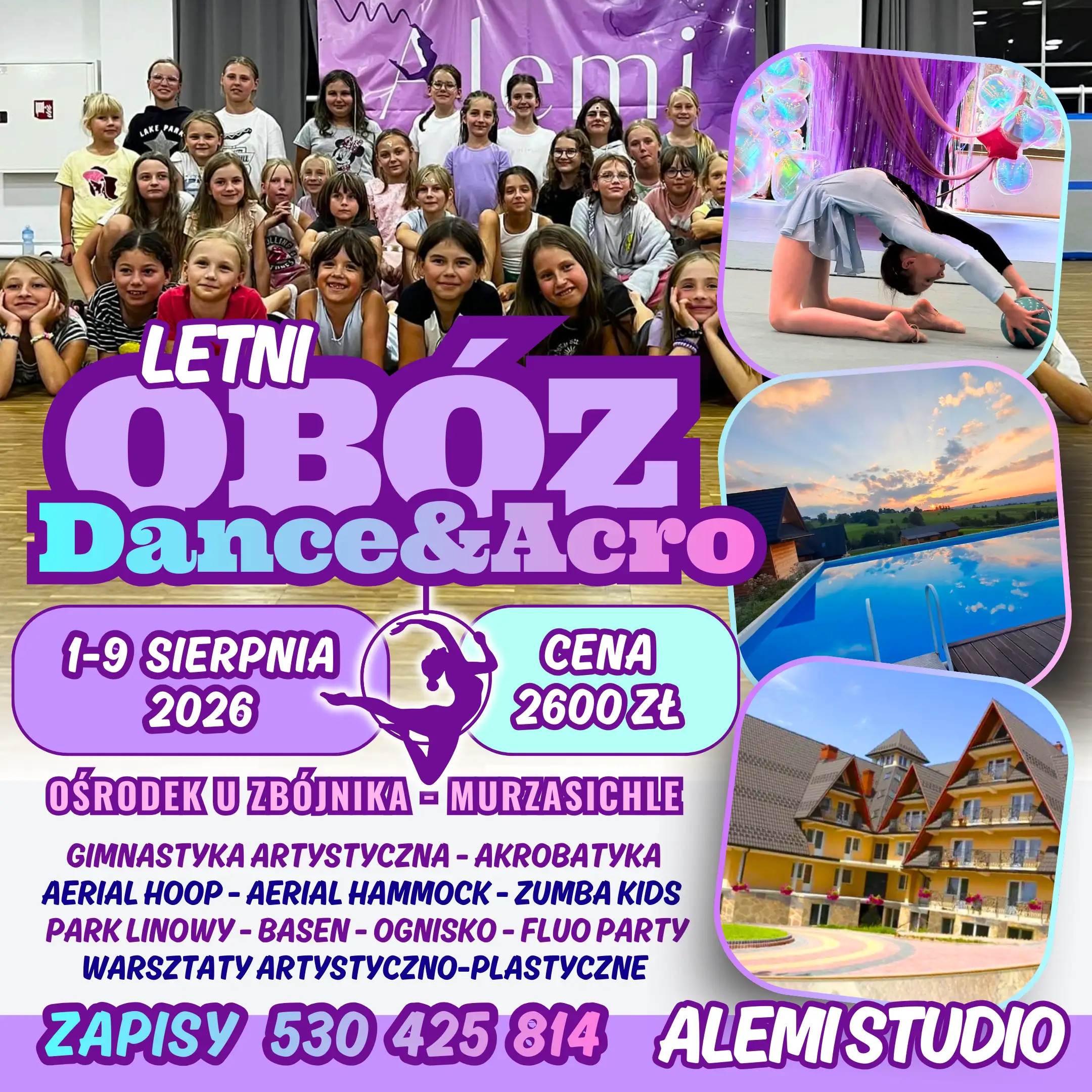 - 📍 Miejsce: Ośrodek „U Zbójnika” – Murzasichle – malowniczo położony ośrodek w górach koło Zakopanego, z dostępem do basenu, terenów rekreacyjnych i przestrzeni do zajęć sportowych oraz artystycznych.